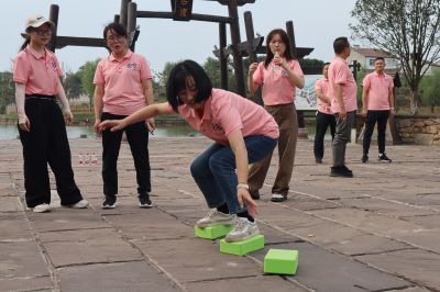 上午9時,團建隊伍在荊州公司廠區門口集合,統一乘車奔赴此次的活動目的地—莫愁村。一路上,大家歡聲笑語,熱情高漲,興致勃勃。經過兩個半小時的車程,團建隊伍抵達了本次團建活動的第一站——莫愁村景區。下午14時,我們整裝待發,前往本次熔煉團隊的場所-莫愁屯廣場。古老神圣的場地與熱血奮發的團隊完美適配。工作小組緊鑼密鼓布置場地,講述團建項目規則和要求,全情投入的熔煉之賽在“抱團取暖”分組游戲中開拔啟航。 在荊州公司總經理鄭彬的指導下,我們先后開展了無敵風火輪、珠行萬里、摸石過河三項團體競賽項目。無敵風火輪培養了隊員團結一致,密切合作,克服困難的團隊精神,加強了服從指揮、一絲不茍的工作態度。珠行萬里中隊員們能強烈感受團隊間有效的緊密配合、有序銜接,大家自發為共同的目的以及團隊的責任感做好每一個環節。最具挑戰的當屬摸石過河,它是耐心和速度的較量,既提高了團隊協作能力和戰略戰術,又訓練了團隊內部的協調能力,增強了隊員間的相互信任和理解。