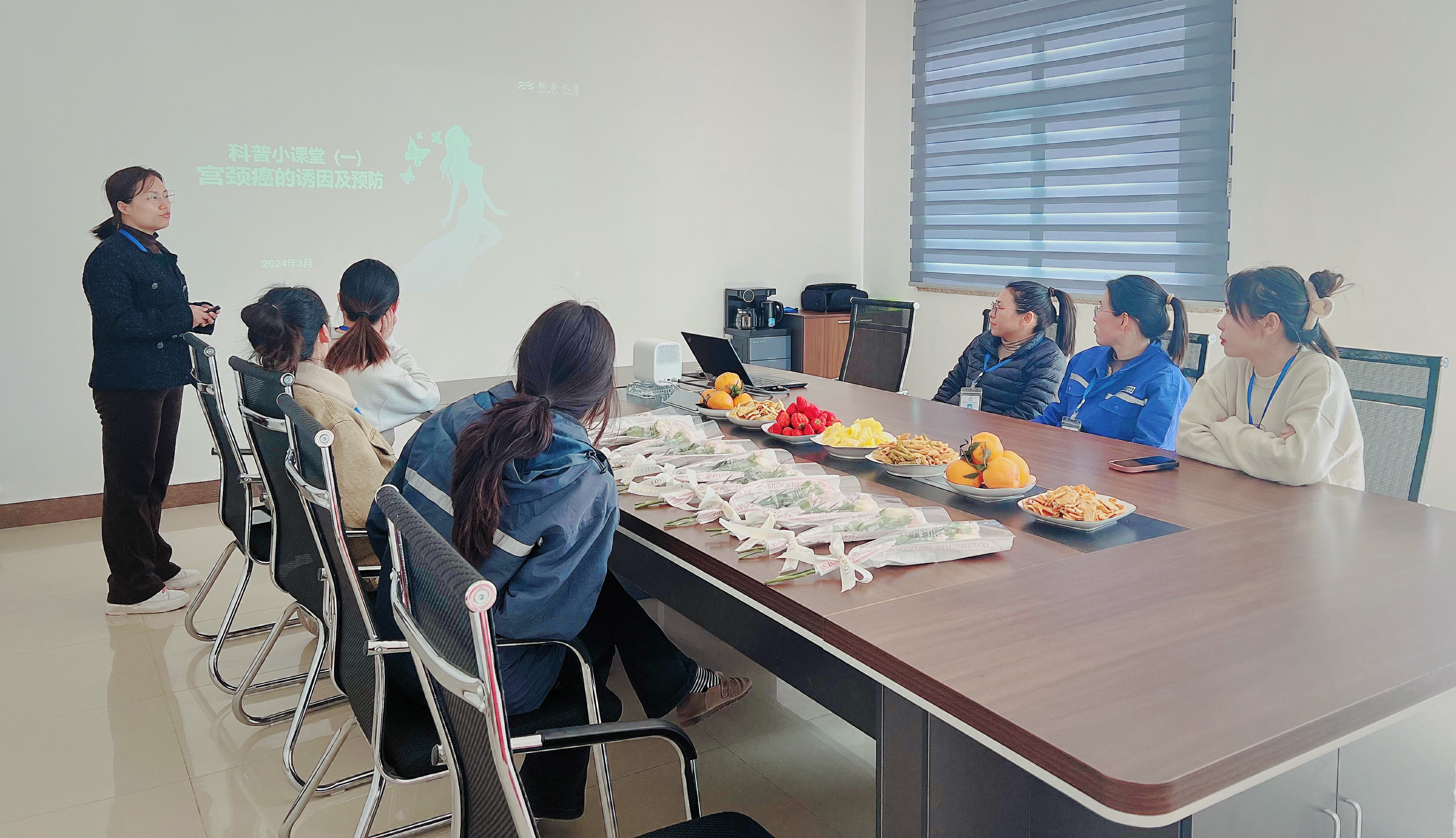 人間最美三月天,春花爛漫展新顏。為積極營造和諧、溫馨、健康的節日氛圍,聚焦女性正能量、幸福獲得感,3月7日,在第114個“三八”國際勞動婦女節來臨之際,曲沃聯合凈水有限公司組織全體女職工開展了——致敬“她”力量,健康普惠澤的主題活動。 一、致敬“她”力量 本次活動,以茶話會的輕松愉悅形式開展,向女士們表達節日祝福,致敬“她”力量。 同時為“女神們”準備了大家喜好的水果、零食,大家互訴衷腸、嘮家常......相互分享禮讓互敬的氛圍,是聯合水務女性職工柔性、團結的最好展現。 二、健康普惠澤 本次茶話會的同時,也以“科普小課堂”的形式,分享宮頸癌的誘因及預防措施,旨在科普相關病毒的基本常識、預防措施、干預手段等,防患于未然,健康雙重保險。