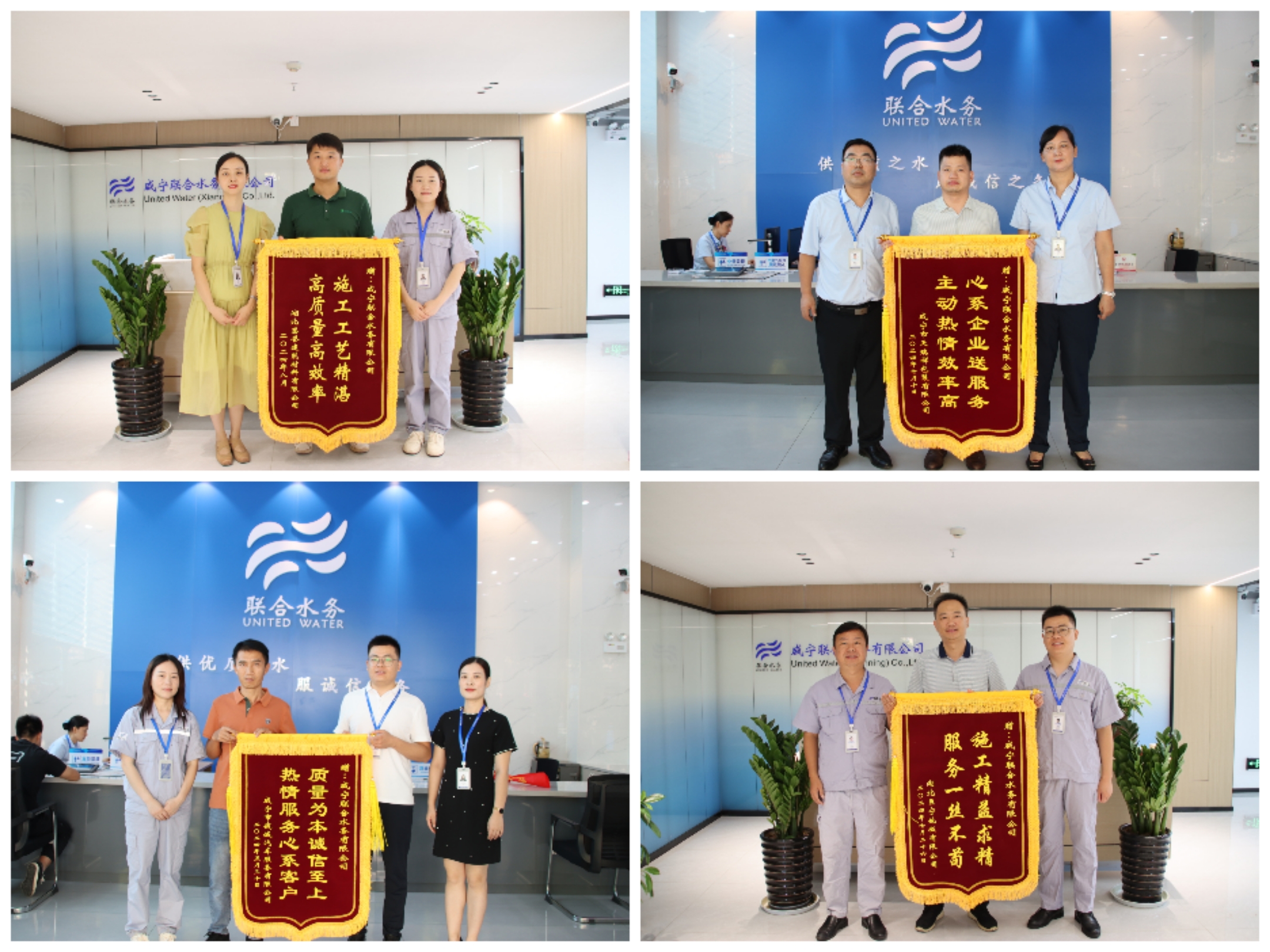 近日,咸寧聯合水務有限公司收到湖北省御鼎新材料科技有限公司、湖北彩翔高科技術有限公司發來的感謝信,旨在對該公司在優化營商環境助企安商的用水報裝服務中積極對接、高效解決用水問題的行為表示感謝。據統計,這是該公司今年以來收到的第7封感謝信,此外,該公司今年還收到8面錦旗。