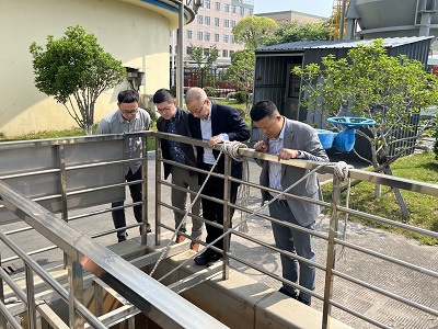 4月28日,聯合水務董事長兼總裁俞偉景、高級副總裁羅斌、建管中心總經理葉峰一行蒞臨桐鄉申和水務有限公司視察指導,桐鄉申和水務有限公司總經理高軍全程陪同。 上午俞總一行蒞臨桐鄉公司,實地視察桐鄉公司廠區各工藝單元的生產運行情況。先查看了桐鄉公司工業污水處理建設項目的改造地、高總現場介紹了該項目的工程概況、前期進展情況、改造方案及后續重點工作等,葉總進行了細節補充。隨后又視察了出水口、生物指示池、CASS池、二沉池等區域。廠區視察結束后,俞總一行來到辦公樓化驗室和中控室,了解活性污泥鏡檢的情況、水質情況和在線實時監控情況。