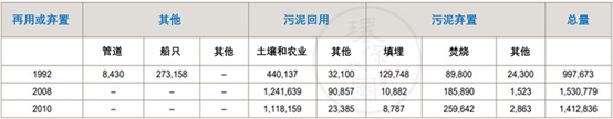 1992年英國污泥產量約為99.77萬噸(干重,下同),2008年污泥產量提高至153.08萬噸.。1992年英國污泥處置方式包括排入地表水、土地利用、焚燒、填埋等,進人21世紀,土地利用和焚燒逐漸成為主要的污泥處置方式。
